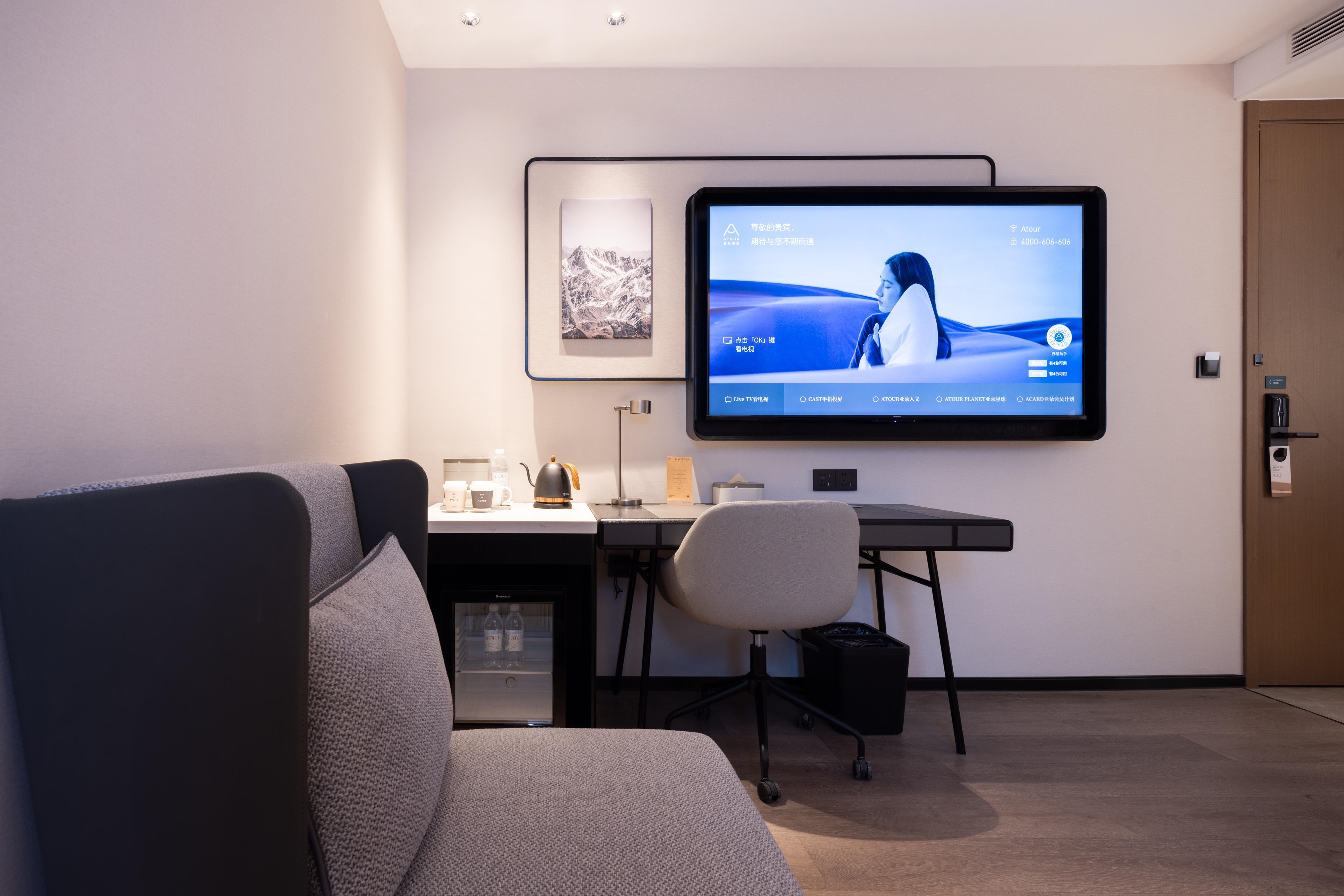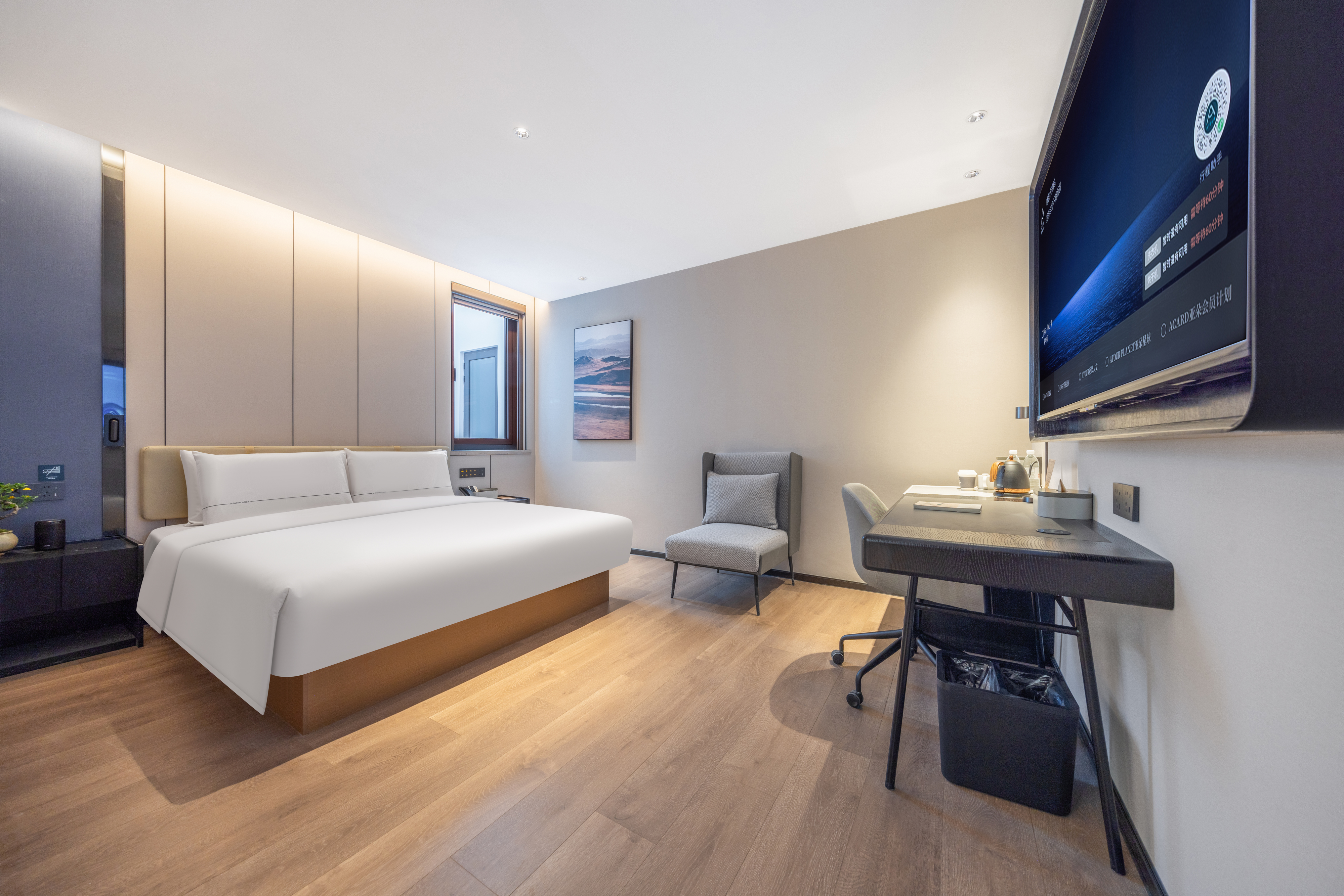 高级大床房(深睡记忆枕+深睡床垫+小冰箱+智能小度音箱+65寸液晶电视)